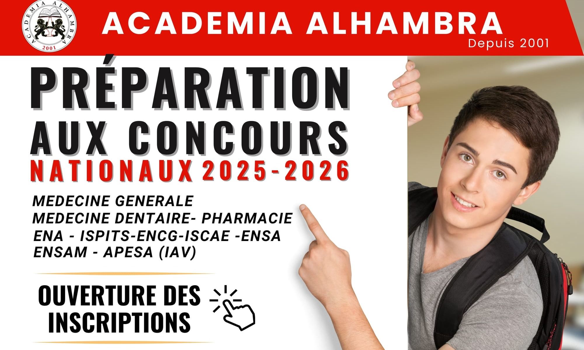 📅 1er mai — Une date, un défi, un événement. 🧠 À tous les esprits brillants, 📐 À ceux qui rêvent en chiffres, ♟️ À ceux qui voient dans chaque problème une opportunité… Le moment est venu. 🔥 Le Grand Prix Alhambra Maths t’ouvre ses portes. Un défi intellectuel pour les bacheliers où logique, vitesse et créativité seront tes armes. 💰 10 000 dirhams à la clé. Mais ce tournoi, c’est plus qu’un prix. C’est un appel aux stratèges du savoir, aux passionnés de mathématiques et aux maîtres des échecs. 🚀 Ce n’est pas un simple concours. C’est une bataille d’esprits, Un show de neurones, Une célébration du génie. ✨ Tu as ce feu en toi ? Alors viens le prouver. 🗓️ Le 1er mai 📍 Académie Alhambra ⚡ Réserve ta place. Brille. Gagne. Seulement pour les meilleurs 👍☺️